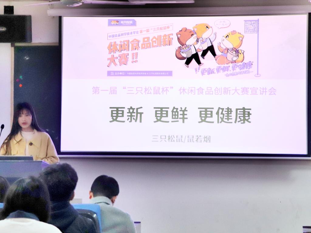 3月13日,“三只松鼠杯”休闲食品创新大赛宣讲会在食品楼215报告厅举行。本次大赛旨在提升学生的创新创业能力,为广大食品学子提供实践与技能展示的平台。本次活动由中文av