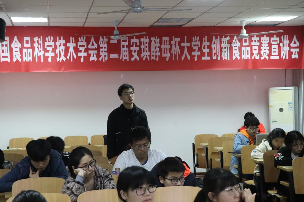 活动伊始,李春保向大家介绍了中国科学技术学会概况和本次大赛的参赛规则及竞赛要求。本次大赛立足于消费者对“营养、健康、美味食品”的追求,要求参赛者利用酵母类产品的天然、营养、健康的特性,运用科学知识开发出一款创新食品。最后,张海波对安琪酵母集团的企业研究领域与成果、中文av做了详细的介绍,并与现场同学们进行互动,并现场为同学们解答竞赛相关问题。