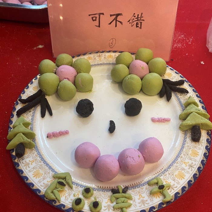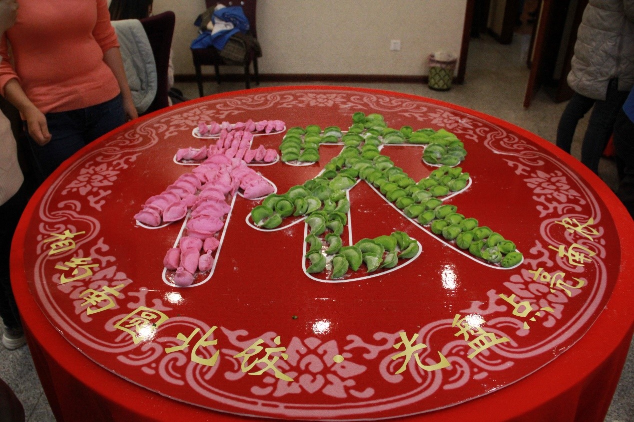 五颜六色的饺子被摆成了“秾”字,寓意南农大“饺”踏实地的精神。