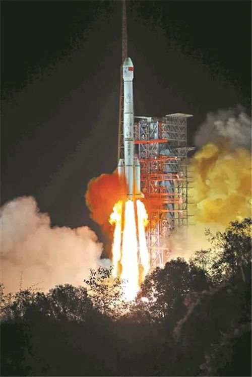 嫦娥二号于2010年10月1日,在西昌卫星发射中心由“长征三号丙”运载火箭发射升空。嫦娥二号以“落”为目标的探月工程二期完成了一系列工程与科学目标,获得了分辨率优于10米月球表面三维影像、月球物质成分分布图等资料。