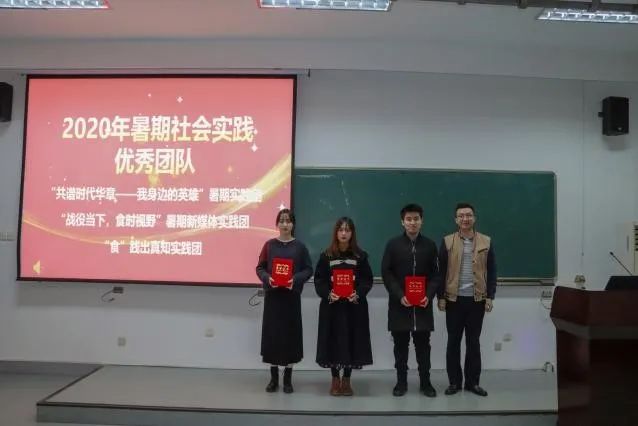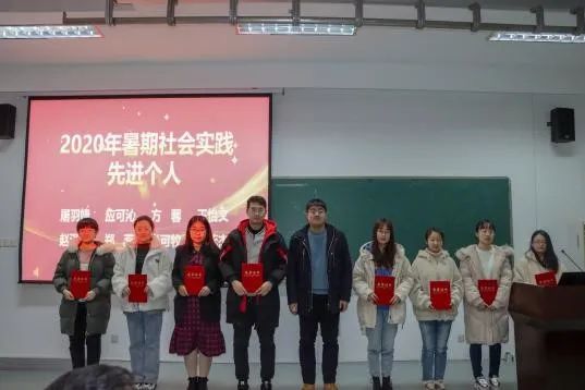 关于表彰2020年社会实践优秀调研报告、社会实践先进个人及优秀团队的决定》。随后,邵春妍、陈宏强、万洋波分别为社会实践优秀调研报告获得者、社会实践先进个人、社会实践优秀团队颁奖。