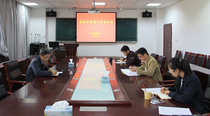 党委在食品楼220会议室召开研究生党建工作研讨会。院党委书记夏镇波、副书记丁广龙出席会议,院团委书记、研究生辅导员王雪飞,本科生辅导员束浩渊、周凌蕾等参加了会议。
