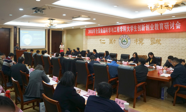 召开。副校长闫祥林教授出席开幕式。中国农业大学、江南大学、华南理工大学、北京林业大学、华中农业大学、西北农林科技大学、南昌大学、四川农业大学等全国20余所高校及企事业单位的60余名代表参加了研讨,重点就推动新时代食品类院校大学生创新创业教育,培养我国“新工科”卓越食品人才进行研讨。会议由中文av