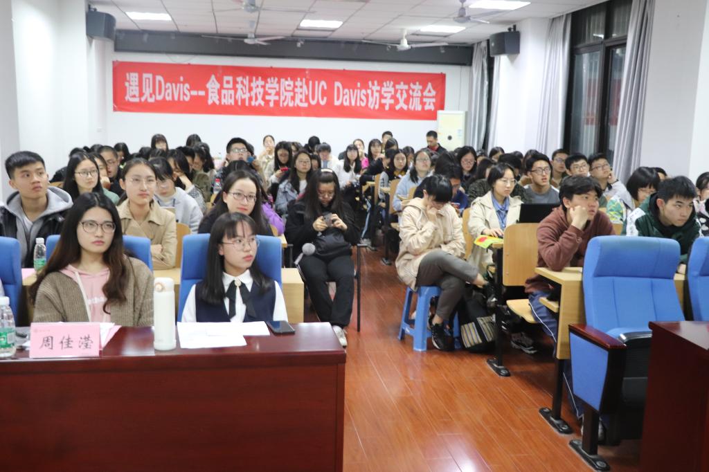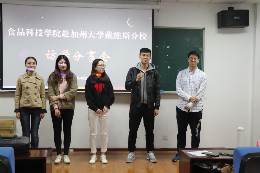 4月11日晚,食品院赴加州大学戴维斯分校访学分享会在院楼213学术报告厅举行。本科生辅导员陈宏强,加州大学戴维斯分校WIFSS会服务部中国区负责人罗承栋出席了本次活动。五位访学优秀学生代表和100余名本科生参加了本次分享会。
