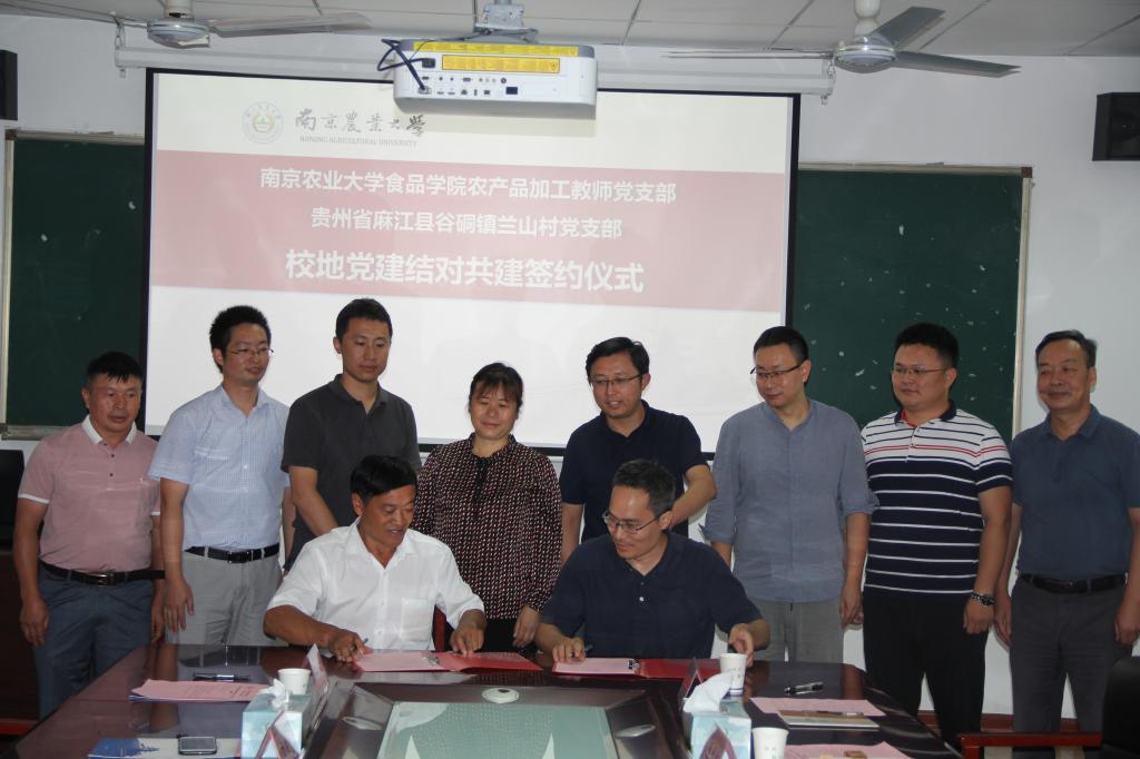 9月17日下午,食品学院农产品加工教师党支部与兰山村党支部在食品学院会议室召开了共建对接交流会。食品学院院党委书记朱筱玉、副书记邵士昌、副院长金鹏、农产品加工教师党支部书记潘磊庆以及支部相关专业教师参加了座谈会。会上,兰山村支部书记陈启华介绍了现兰山村概况、党建成效、脱贫致富的重点难点以及相关技术需求。双方就今后加强以党建为引领、多方互助共建的合作机制做了交流,并签订了支部共建协议,支部还向村图书室捐赠了农技图书500册。