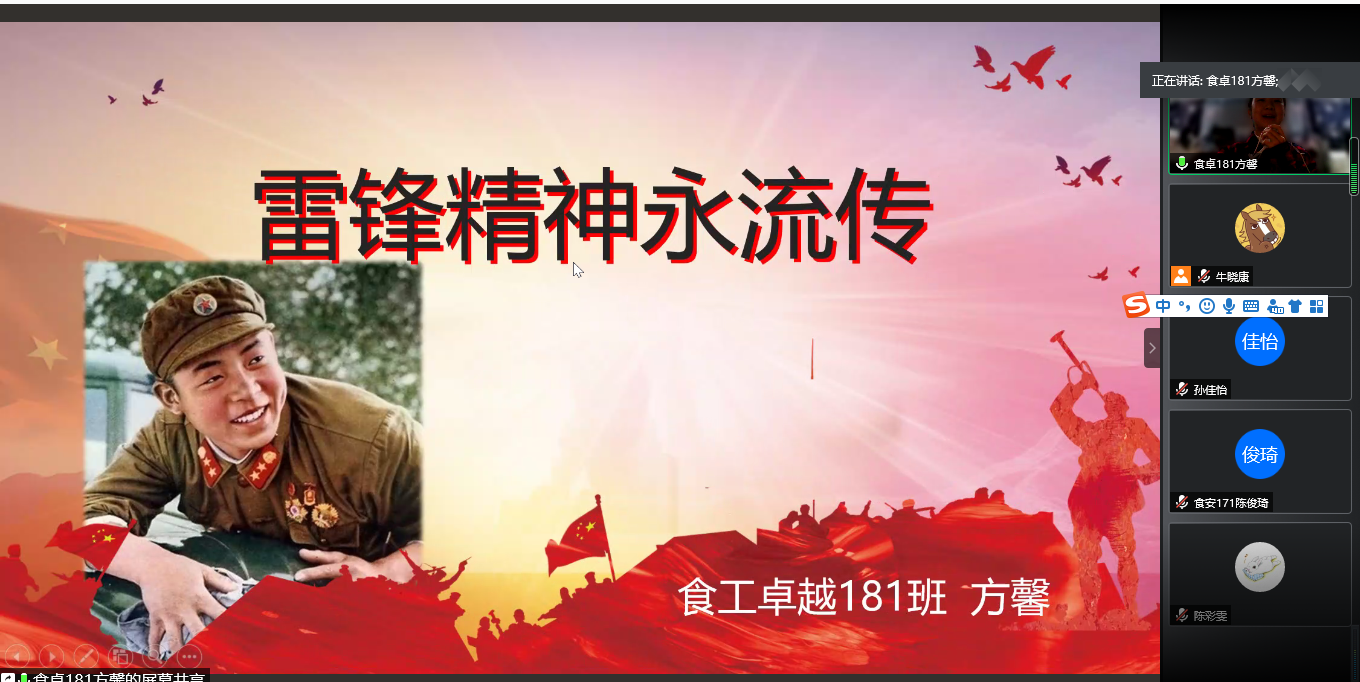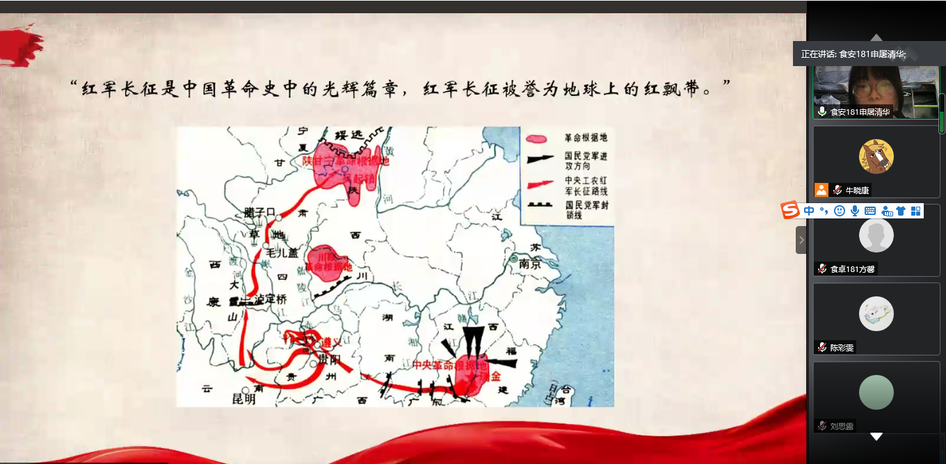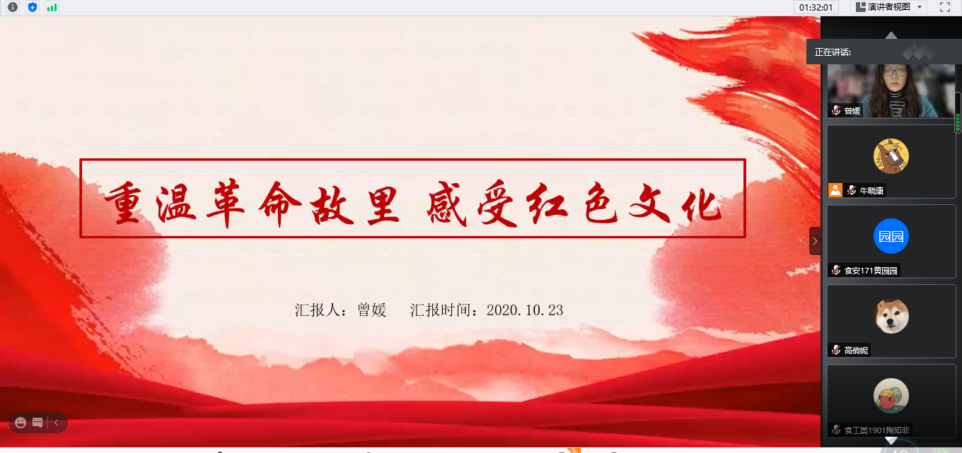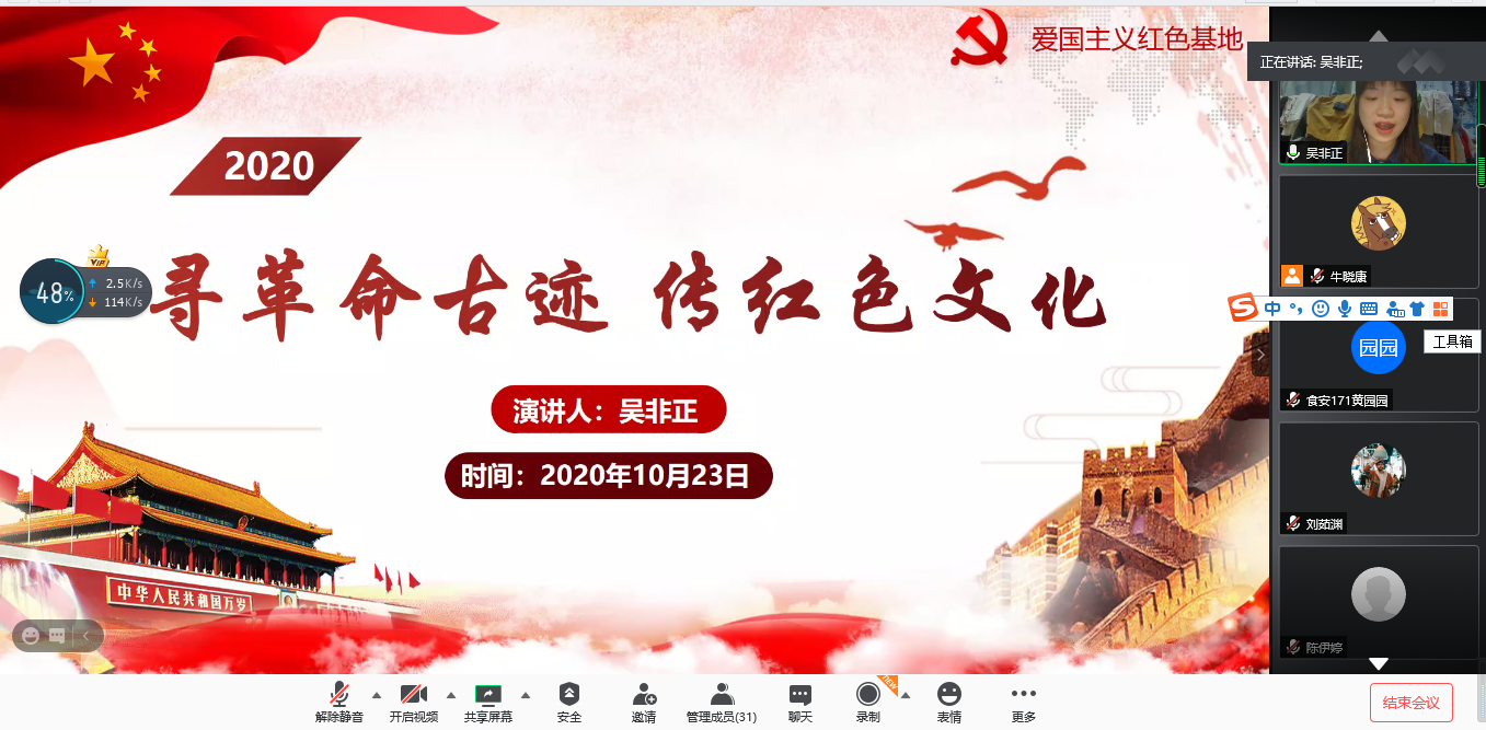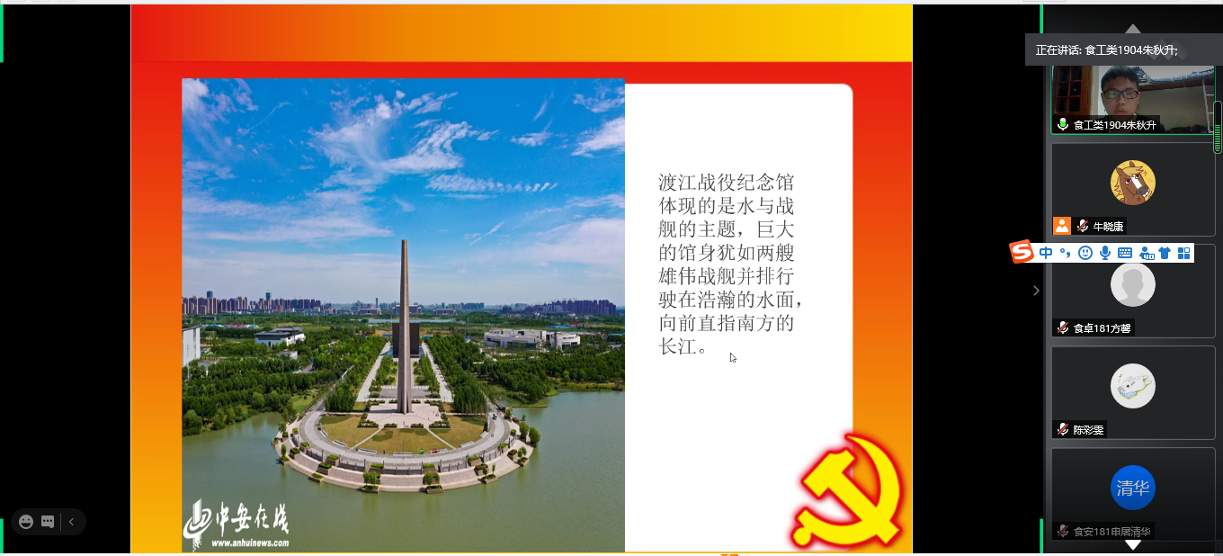 “鉴四史初心征程 循故乡红色经典”主题学习分享会在线上成功举行。本次活动共有34名入党积极分子分享云参观红色爱国主义教育基地收获和感悟。食品院本科生辅导员陈宏强主持此次活动。