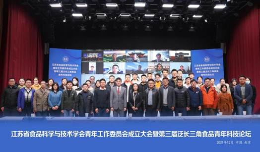 2021年12月11日,江苏省食品科学与技术学会青年工作委员会成立大会暨第三届泛长三角食品青年科技论坛以“线上+线下”的形式在南农召开。江苏省食品科学与技术学会理事长金征宇教授、副理事长徐幸莲教授、秘书长王周平教授,中国食品学科技术学会秘书长陈铮工程师,以及上海、浙江、山东、福建、安徽和江苏等“五省一市”的代表参加成立大会。会议由王周平秘书长主持。
