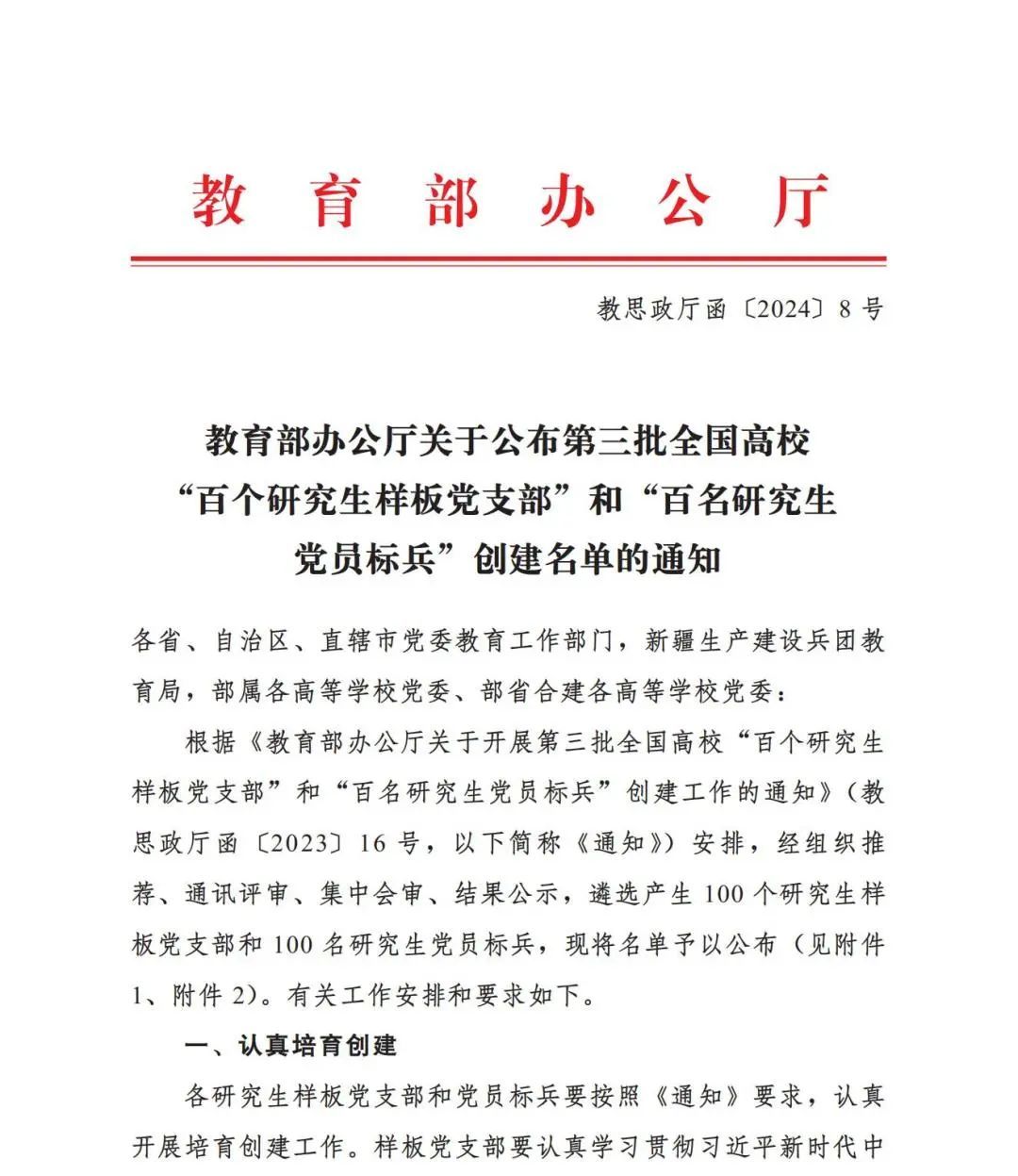近日,教育部公布了第四批全国党建“双创”培育创建单位和第三批全国高校研究生“双百”创建名单。中文av