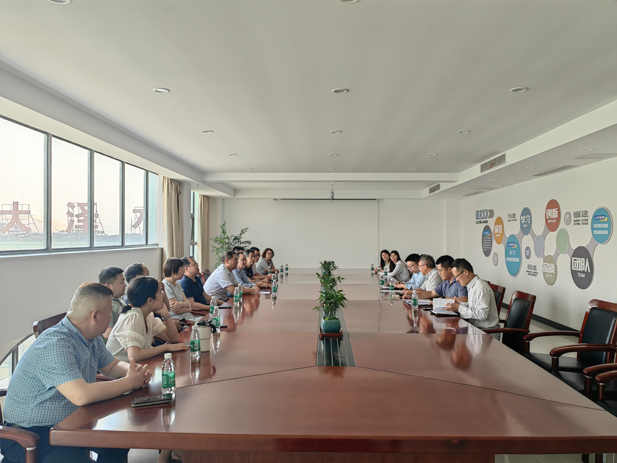 在兴化市大泽水产制品有限公司,双方就人才培养、毕业生就业、新产品研发等事宜进行了讨论交流,积极探索校企合作模式。孙健介绍了学院的学科设置和专业建设,并表示学院的学科特色和人才培养与企业的人才需求高度契合,希望能探索进一步深入合作。