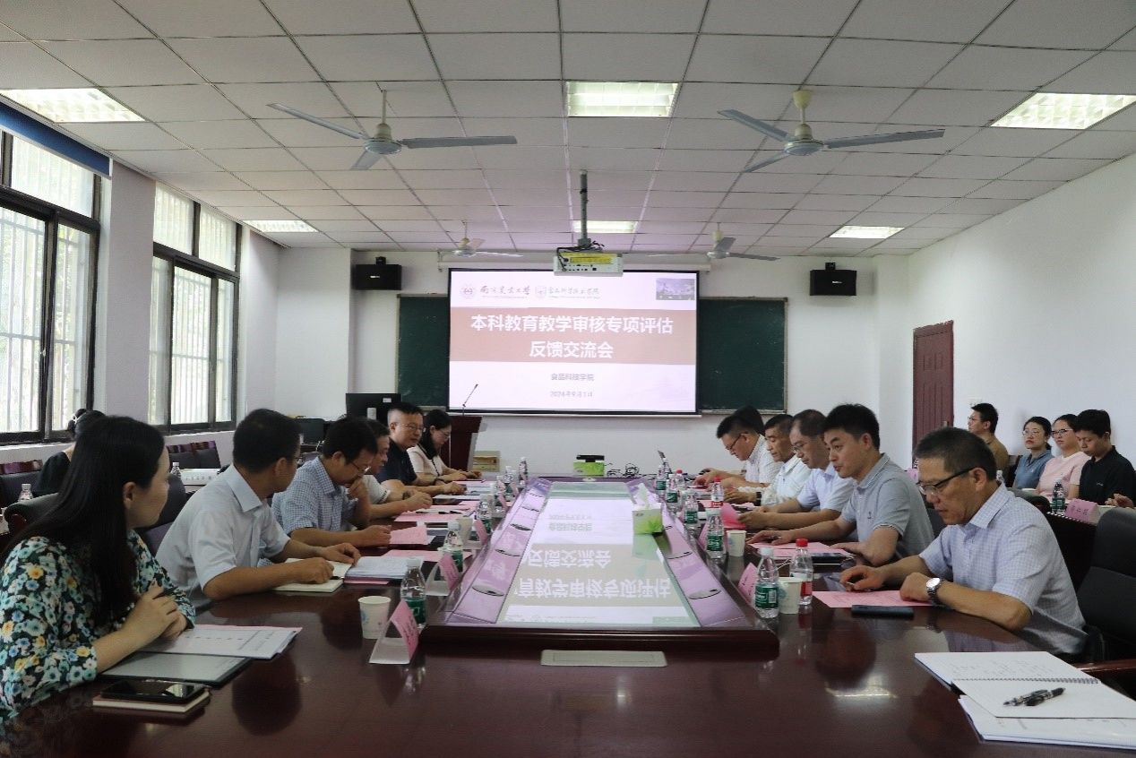 本科教育教学审核专项评估反馈交流会在食品院220会议室顺利召开。江南大学教务处李兆丰处长、中国农业大学食品科学与营养工程学院廖小军院长、西北农林科技大学食品科学与工程学院吕欣院长、大连工业大学食品学院周大勇院长作为专家组成员出席会议。校党委副书记、纪委书记吴荣顺,校教务处副处长、专项评估联络员祖海珍,校教务处教研科科长、专项评估观察员李艳丹,学院领导班子、各系系主任及本科教育教学审核评估小组的其他成员共同参加了会议。会议由中文av