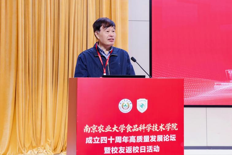 原院长陆兆新作为退休教师代表发言,他表示,40年来学院的每一步发展,都凝聚着几代食品人的坚守与付出。他寄语新一代师生在合成生物学、精准营养等前沿领域持续创新,奋力谱写“健康中国、食安天下”新篇章,并祝愿学院在新征程上再创辉煌。