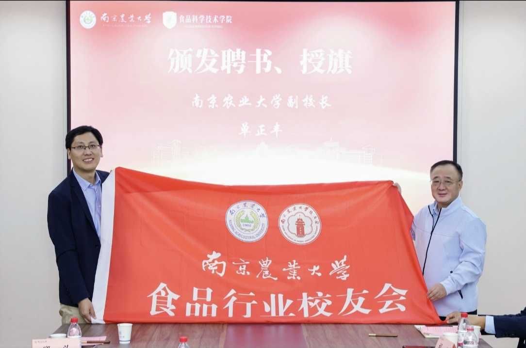 副校长单正丰为第二届理事会会长、副会长颁发聘书,并举行了隆重的授旗仪式。鲜红的会旗象征着使命的传递与责任的延续,标志着食品行业校友会正式开启新的征程。