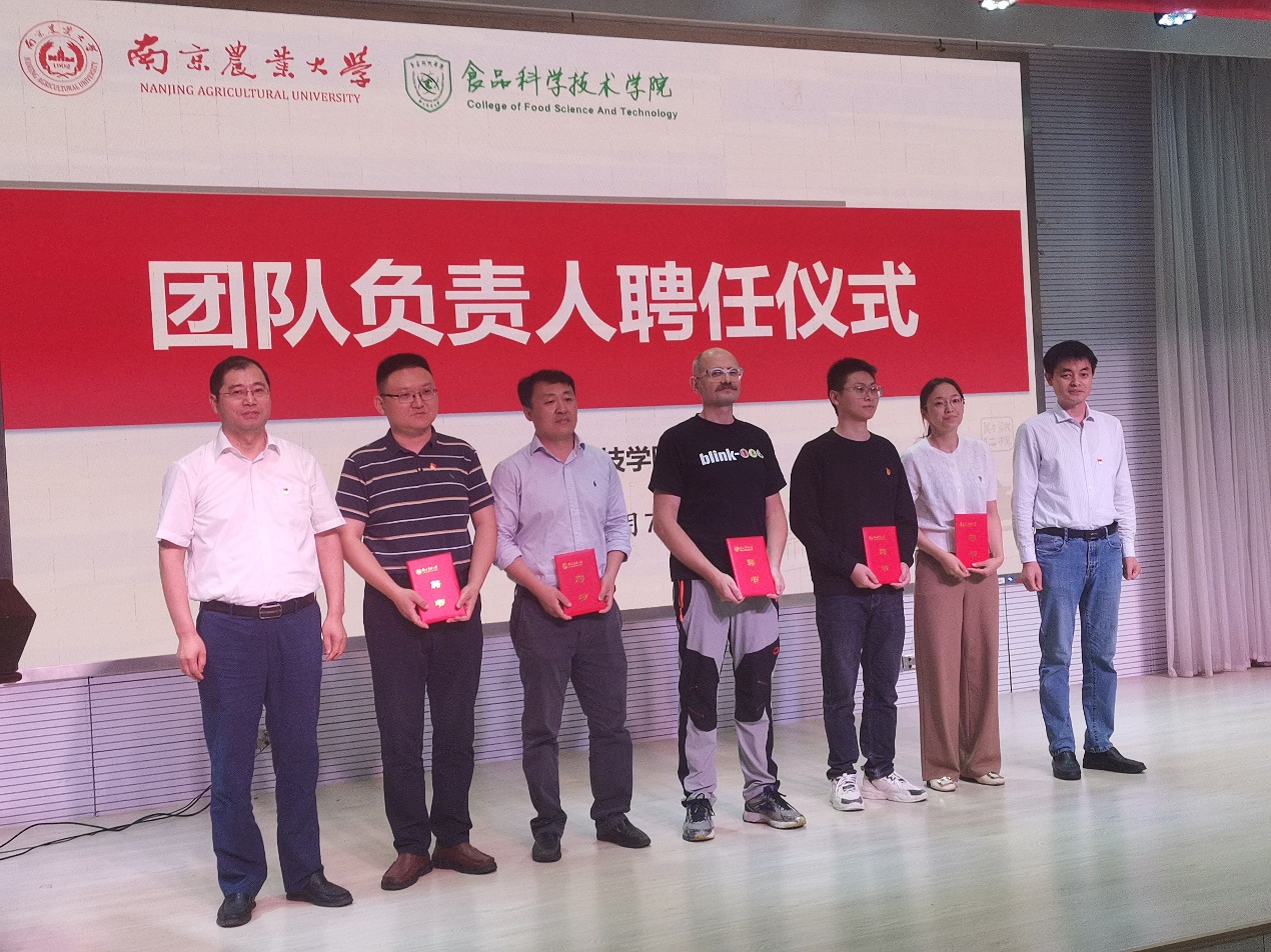 会议首先举行了团队负责人聘任仪式,聘任周光宏教授、潘磊庆教授、张充教授、Josef Voglmeir教授、胡冰教授为学院团队负责人,孙健和李春保为负责人颁发聘书。李春保希望各团队负责人紧紧围绕国家和产业需求,开展有组织的科研,营造良好的学术氛围,为学院发展做出新贡献。